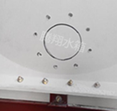 玻璃鋼水箱第五步:這樣法蘭就安裝完成了,注意:安裝所有接口法蘭,接口必須用密封膠墊和玻璃膠來密封緊固螺栓。www.tengxianggongsi.com