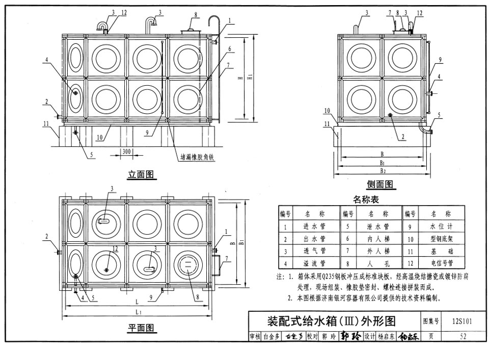 ※ 本公司水箱供貨范圍為箱體、帶鎖人孔、爬梯、短管及單片法蘭。