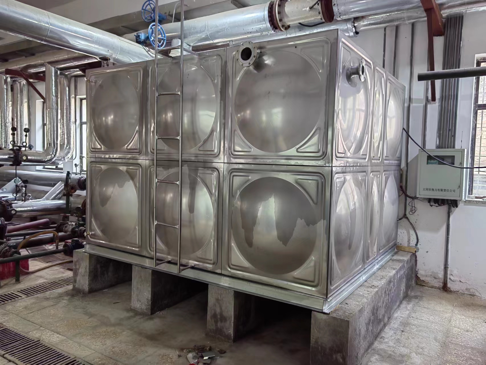 我廠承接的山西省大同市銀豪嘉園換熱站一臺15立方304不銹鋼水箱補水水箱已經安裝試水完成,客戶對我們的產品質量及安裝服務表示滿意和認可。現場實拍照片如下: