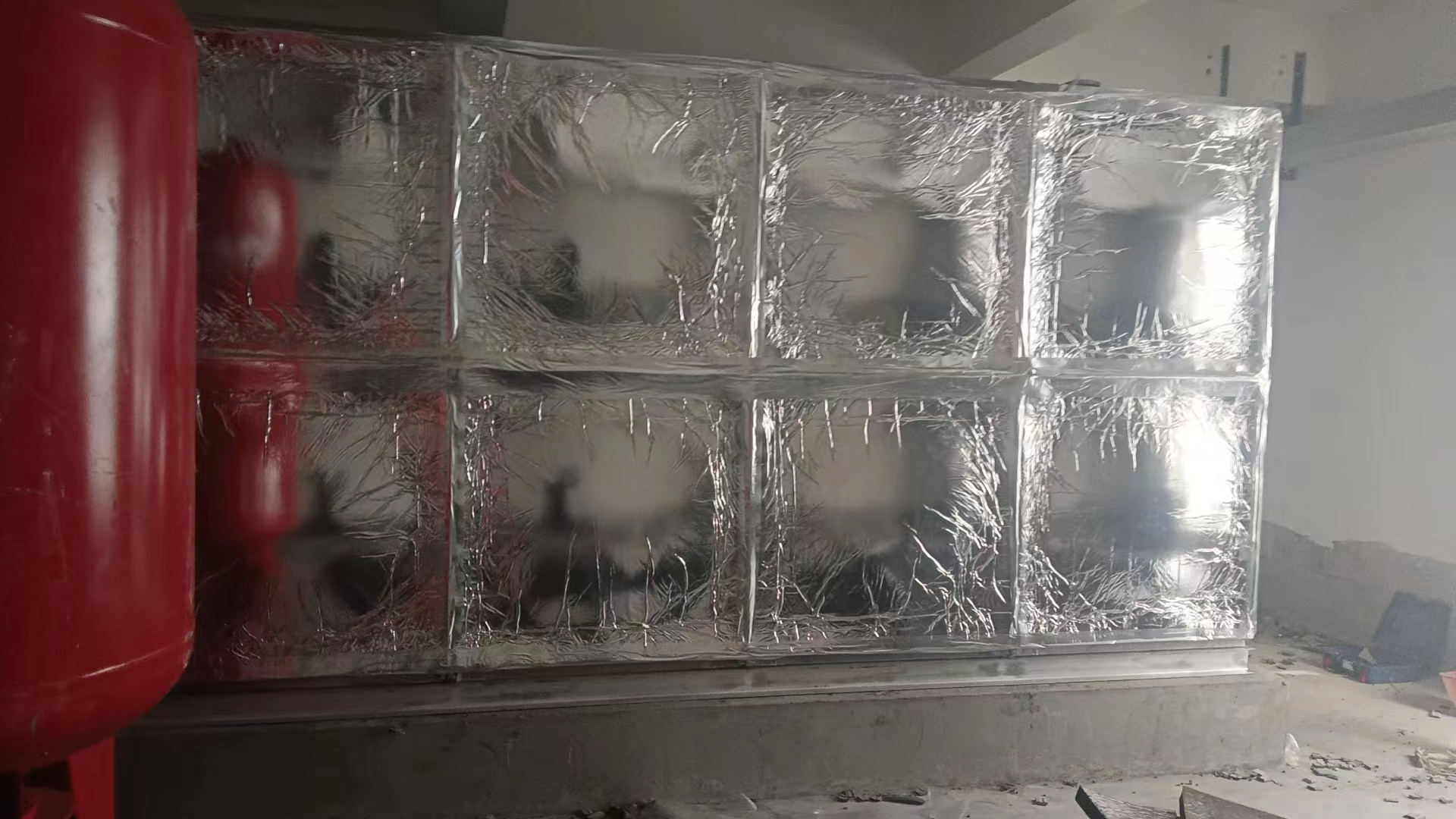 我廠承接的山東省濰坊市泰和東郡1臺56立方304裝配式不銹鋼保溫水箱已經(jīng)安裝試水完成,水箱位于樓頂室內(nèi),水箱四周采用的是橡塑鋁箔布保溫。現(xiàn)場實(shí)拍照片如下: