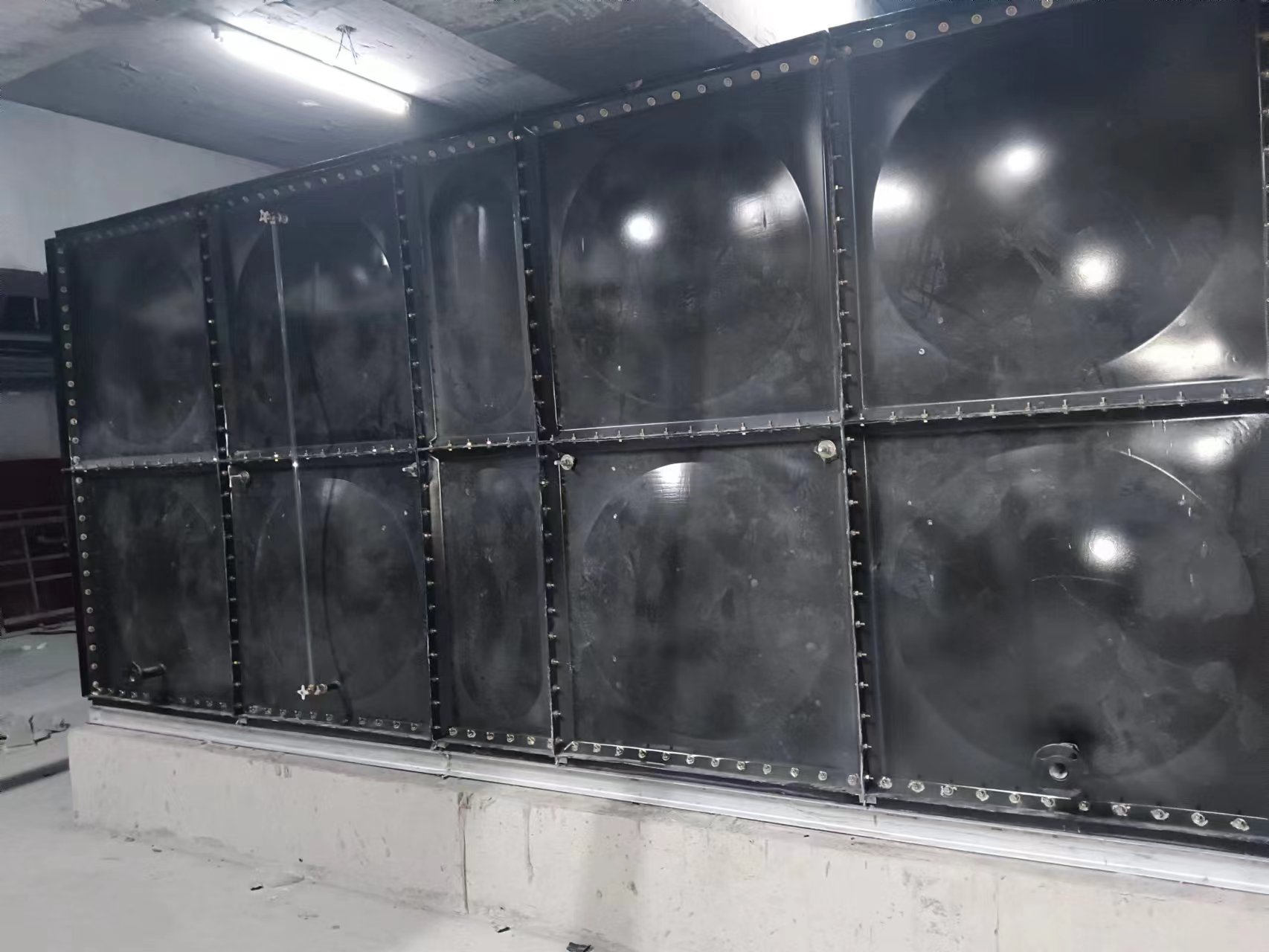 這三臺搪瓷鋼板水箱安裝于山東省濟南歷城德慧小學,用于該校消防用水使用,經過安裝師傅5天時間的安裝施工已經試水完成,客戶對我公司產品質量和安裝表示認可。現場實拍照片如下: