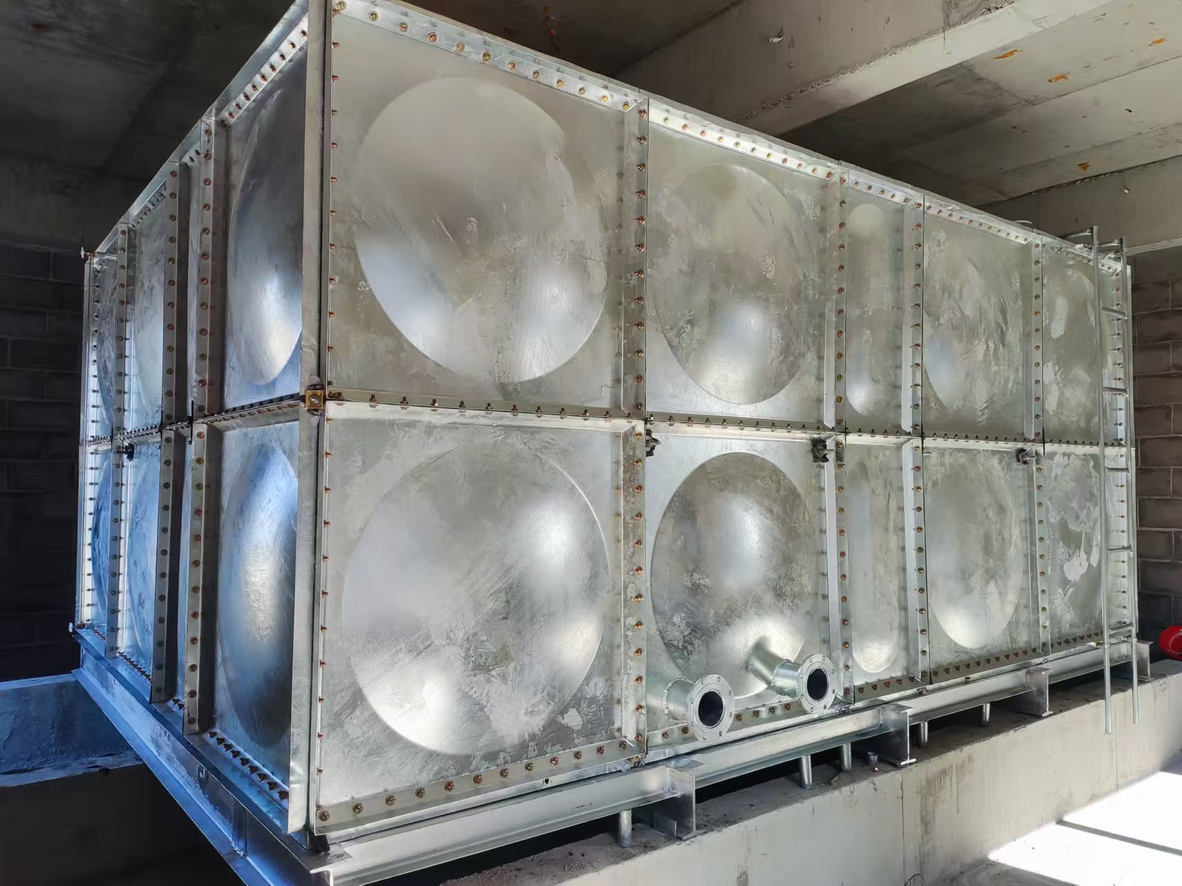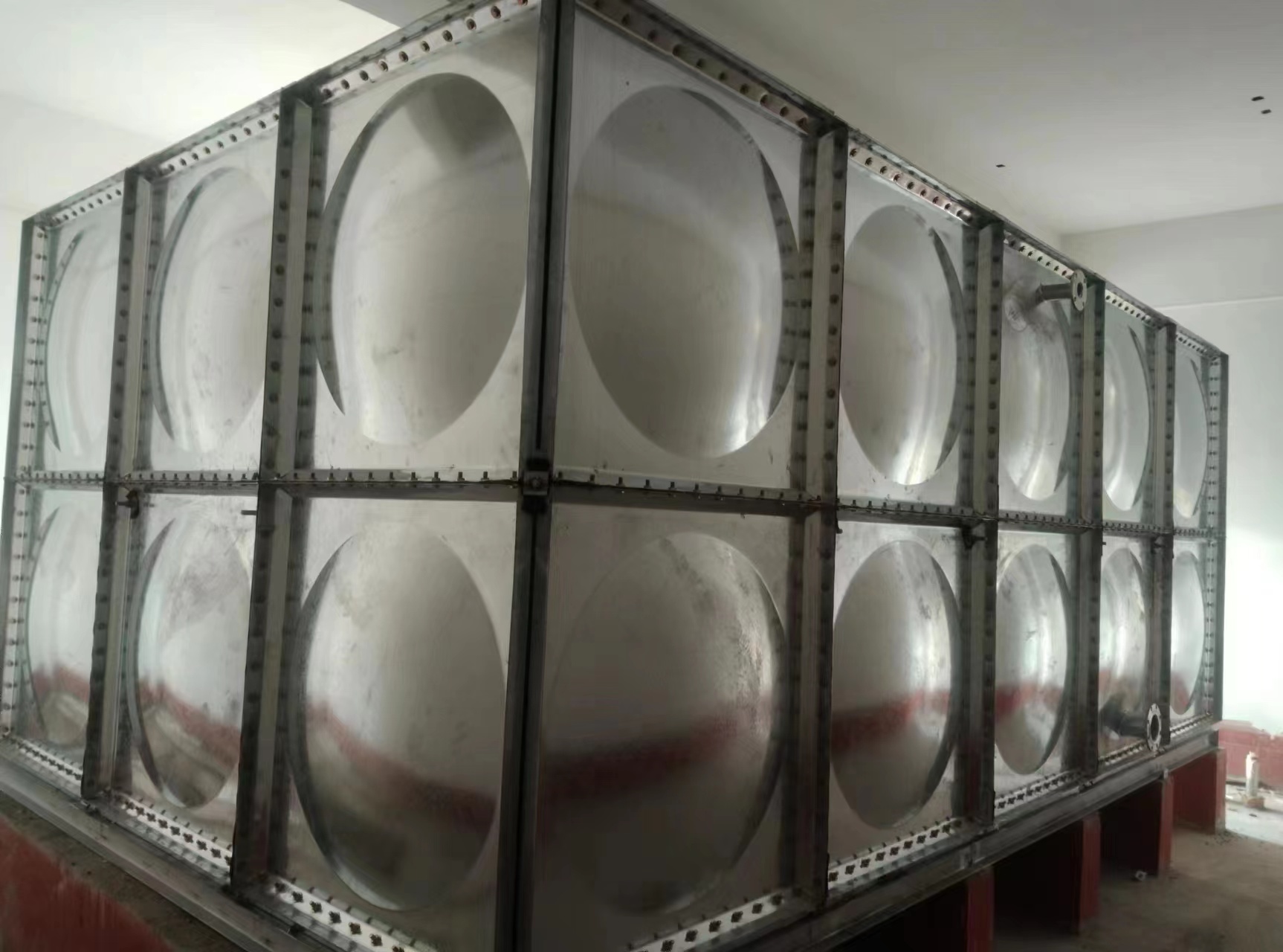 生活中咱們運(yùn)用的鍍鋅水箱選用全螺栓連接,現(xiàn)場(chǎng)進(jìn)行拼裝,拼裝快捷便利,拼裝時(shí)選用專用密封條密封,不會(huì)出現(xiàn)漏水及密封不嚴(yán)現(xiàn)象。鍍鋅水箱體內(nèi)有著特殊性拉桿結(jié)構(gòu),使力學(xué)性能更合理,高度可到達(dá)5米。鍍鋅水箱對(duì)安裝現(xiàn)場(chǎng)無(wú)特殊要求,無(wú)需吊裝設(shè)備,容積可滿足用戶全部要求,二十四小時(shí)不漏水為合格。